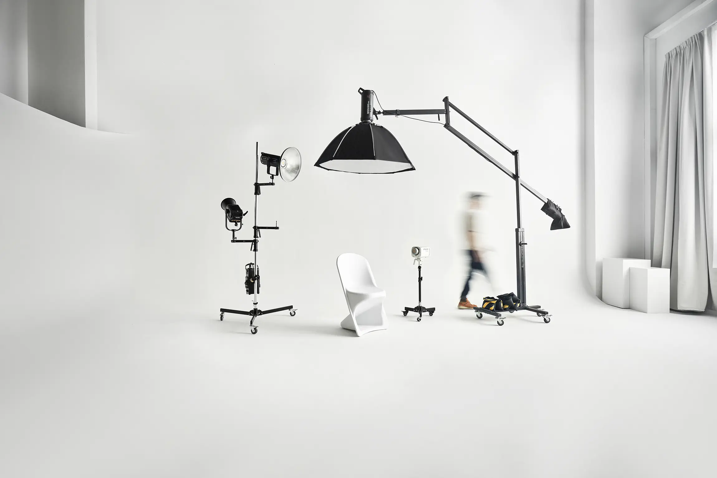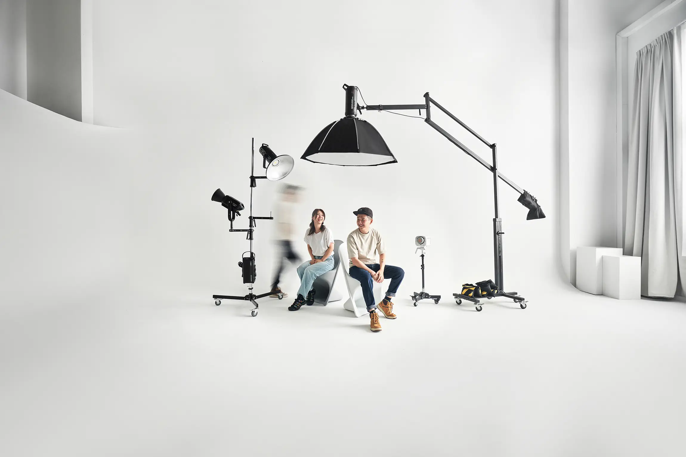 - Seamless white background: Ideal for product, fashion, and corporate photography.